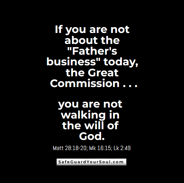 Are you personally participating in, contributing your time, talents, and treasures into the Great Commission Jesus gave us? See the end of Matthew and Mark.