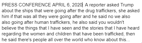 Interestingly, he claimed “someone” at Mar-a-Lago had provided U.S. Special Operations (Command) with credible evidence of “child trafficking” on the vessel. He would not, however, say whether the tip came directly from Donald J. Trump.