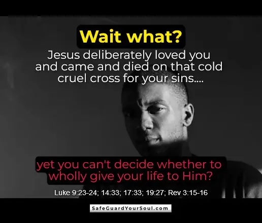 “And there went great multitudes with him: and he turned, and said unto them, 26 If any man come to me, and hate not his father, and mother, and wife, and children, and brethren, and sisters, yea, and his own life also, he cannot be my disciple. 27 And whosoever doth not bear his cross, and come after me, cannot be my disciple. 28 For which of you, intending to build a tower, sitteth not down first, and counteth the cost, whether he have sufficient to finish it? 29 Lest haply, after he hath laid the foundation, and is not able to finish it, all that behold it begin to mock him, 30 Saying, This man began to build, and was not able to finish. 31 Or what king, going to make war against another king, sitteth not down first, and consulteth whether he be able with ten thousand to meet him that cometh against him with twenty thousand? 32 Or else, while the other is yet a great way off, he sendeth an ambassage, and desireth conditions of peace. 33 So likewise, whosoever he be of you that forsaketh not all that he hath, he cannot be my disciple.” Luke 14:25-33