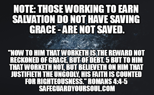 “Now to him that worketh is the reward not reckoned of grace, but of debt. 5 But to him that worketh not, but believeth on him that justifieth the ungodly, his faith is counted for righteousness.” Romans 4:4-5