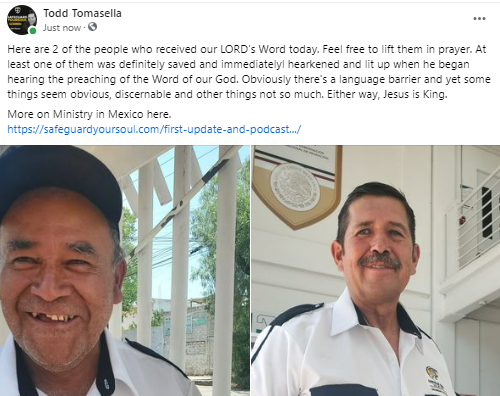 KINGDOM BREAKING: In two separate incidents, in Spanish, both Pepe and another man (didn’t get his name) just received a full blown, joy-overflowing presentation of the Gospel of our LORD Jesus Christ. Among other truth preached to them, how His precious blood can wash them pure and clean, cleansing away all their sins, just as it did for this born and raised Catholic altar boy now born again disciple ….. Pepe was told that Jesus loves him and wants to forgive all his sins, instantly. Their faces lit up with joy as they received His Word – Good News!