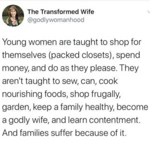Follow “The Transformed Wife” – Lori Alexander on social media. She puts out fabulous posts to women according to Titus 2:1-5.