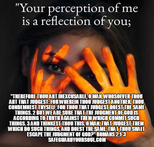 “Therefore thou art inexcusable, O man, whosoever thou art that judgest: for wherein thou judgest another, thou condemnest thyself; for thou that judgest doest the same things. 2 But we are sure that the judgment of God is according to truth against them which commit such things. 3 And thinkest thou this, O man, that judgest them which do such things, and doest the same, that thou shalt escape the judgment of God?” Romans 2:1-3