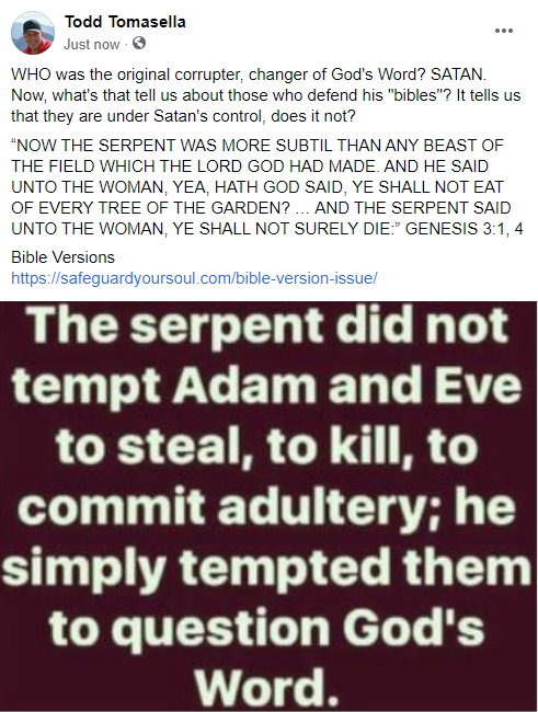 Personally, I don’t want to waste time on folks that are going to argue to defend the very work of Satan and then try to turn it around on those who believe God kept His Word to preserve His Word (Psalms 12-6-7). If after being shown the clear and large, significant differences in the version and still arguing to defend them, I am done … with folk like that. Those who defend the work of Satan obviously belong to him. Of these religiously cloaked devils, Jesus says “Ye are of your father the devil.” (John 8:44)