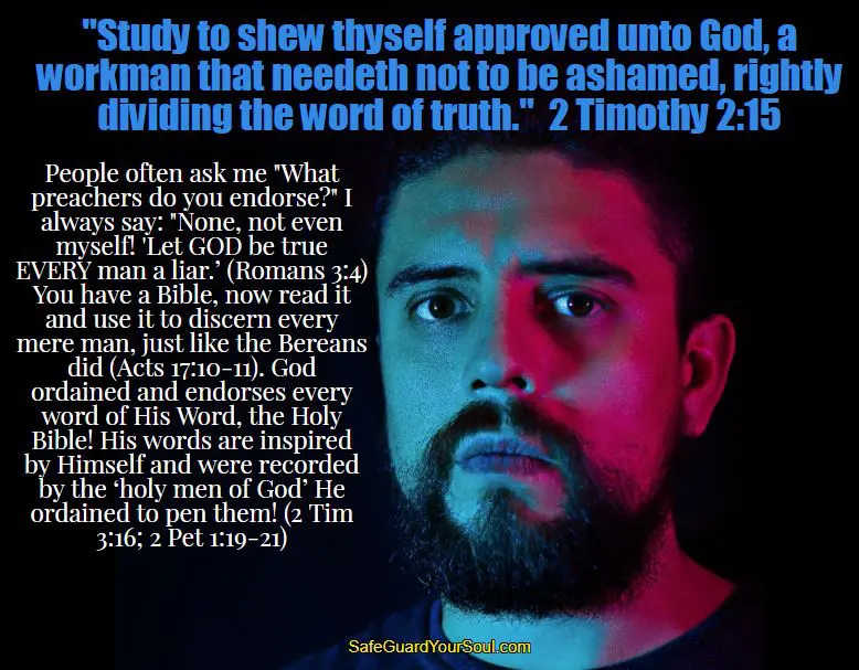 The LORD made you. He intentionally gave you the complete faculties to know Him for yourself by reasoning out the whole counsel of His Word—synthesizing it all together (Isaiah 28:10, 16; 1 Corinthians 2:13; 2 Timothy 2:15). Study His Word daily, diligently and ask Him to lead you into all truth. Trust the Holy Ghost to teach you, to lead you into His holy truth and to protect you from the many poisons in the pond of the modern church (John 14:26; 16:13-14; 1 John 2:20, 27).