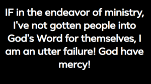 If a person isn’t in the Word, learning the Word and meditating on the Word, he has no business acting as if he is ministering for Christ! Such a person’s knowledge of God is second hand at best. Wisdom would be to repent now and get into God’s Word with reckless abandonment! When we get into the Word it will then and only then get into us! (2 Timothy 2:15)