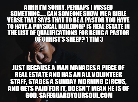 There is no place in the New Testament where Christ’s apostles are seen telling a believer to “go report to the building where the local pastor is set up and submit to him.” No. The kingdom of Christ is as vast as His creation in that it’s where ever His domain is. King-dom = domain of the King. Beware of those who subtly insinuate that God only moves through their little building-based “ministry” they’ve set up.